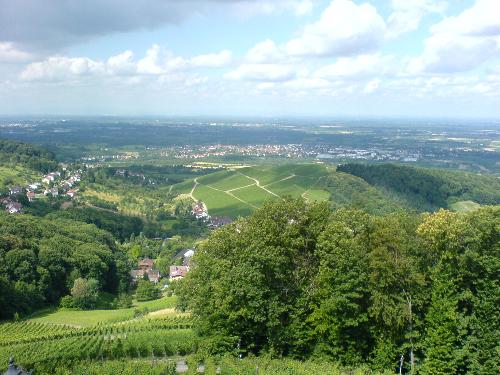 Ein Blick von der Burg Windeck bei Bühl/Baden ins Rheintal in Richtung Offenburg und Ortenau. |