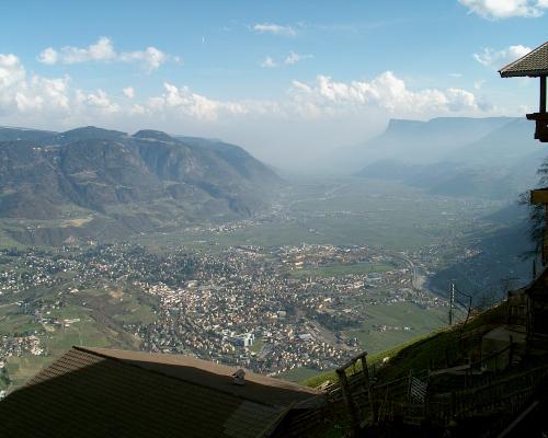 | Im Tal liegt Meran, links auf halber Höhe Dorf Tirol. Ein schönes Wandergebiet und ideal für einen Kurzurlaub oder ein langes Wochenende. |